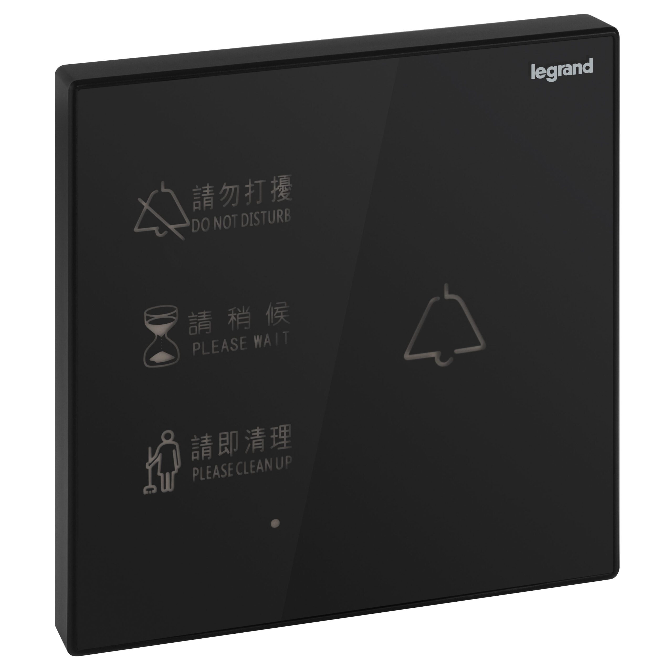 Galion 1 gang Do Not Disturb and Make Up my Room indicator and bell push button – black touch plate.