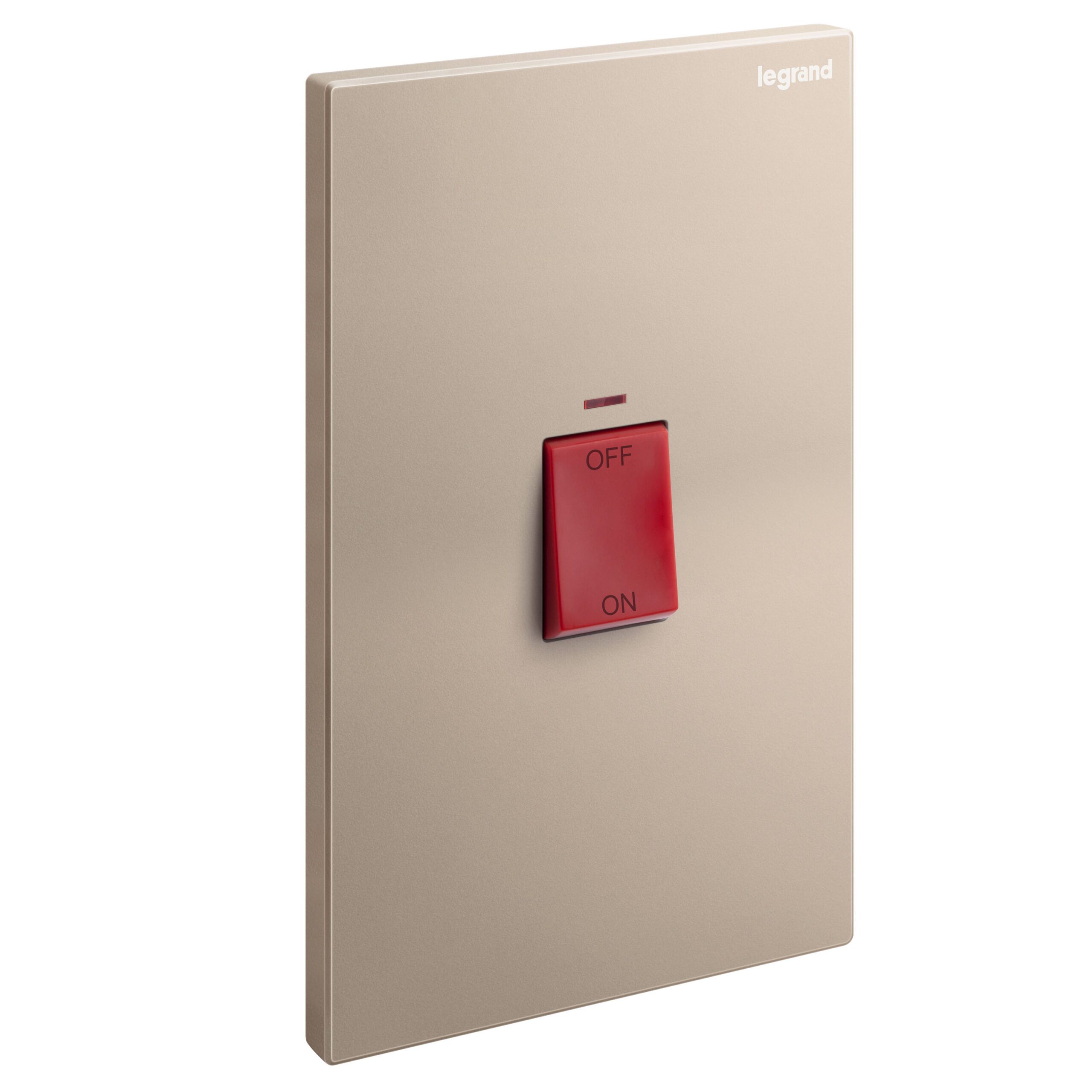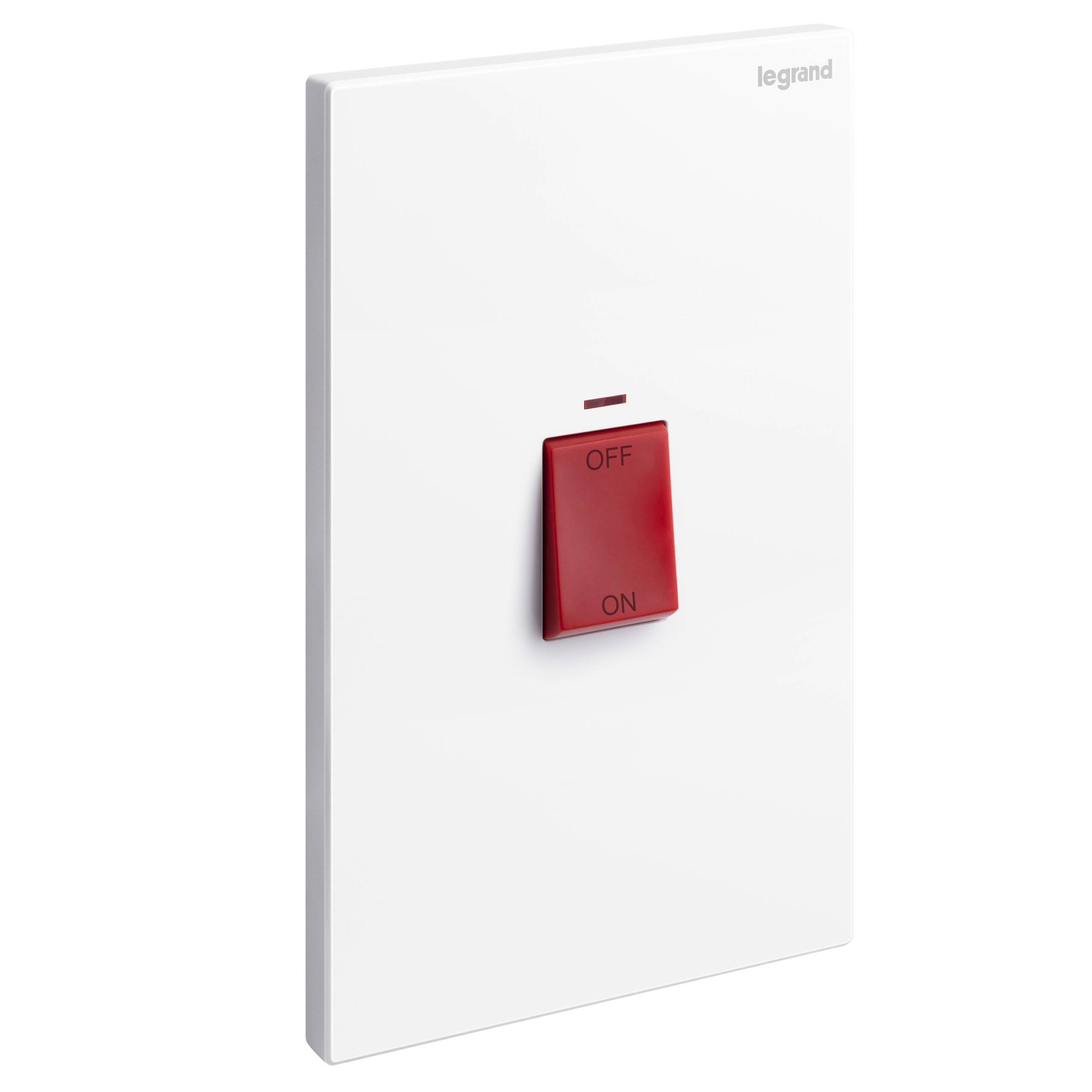 Galion 2 gang vertical double pole 45A switch with red power indicator