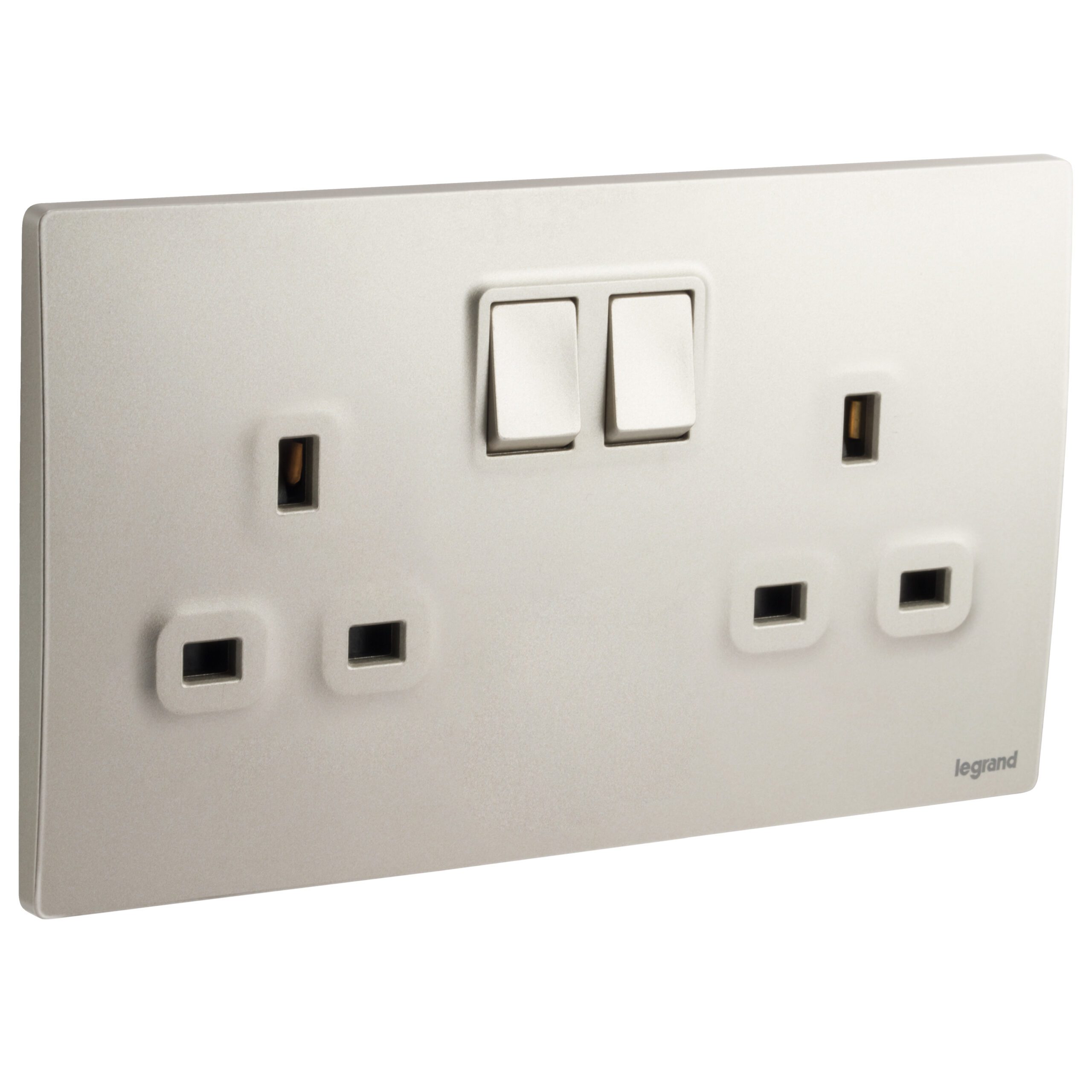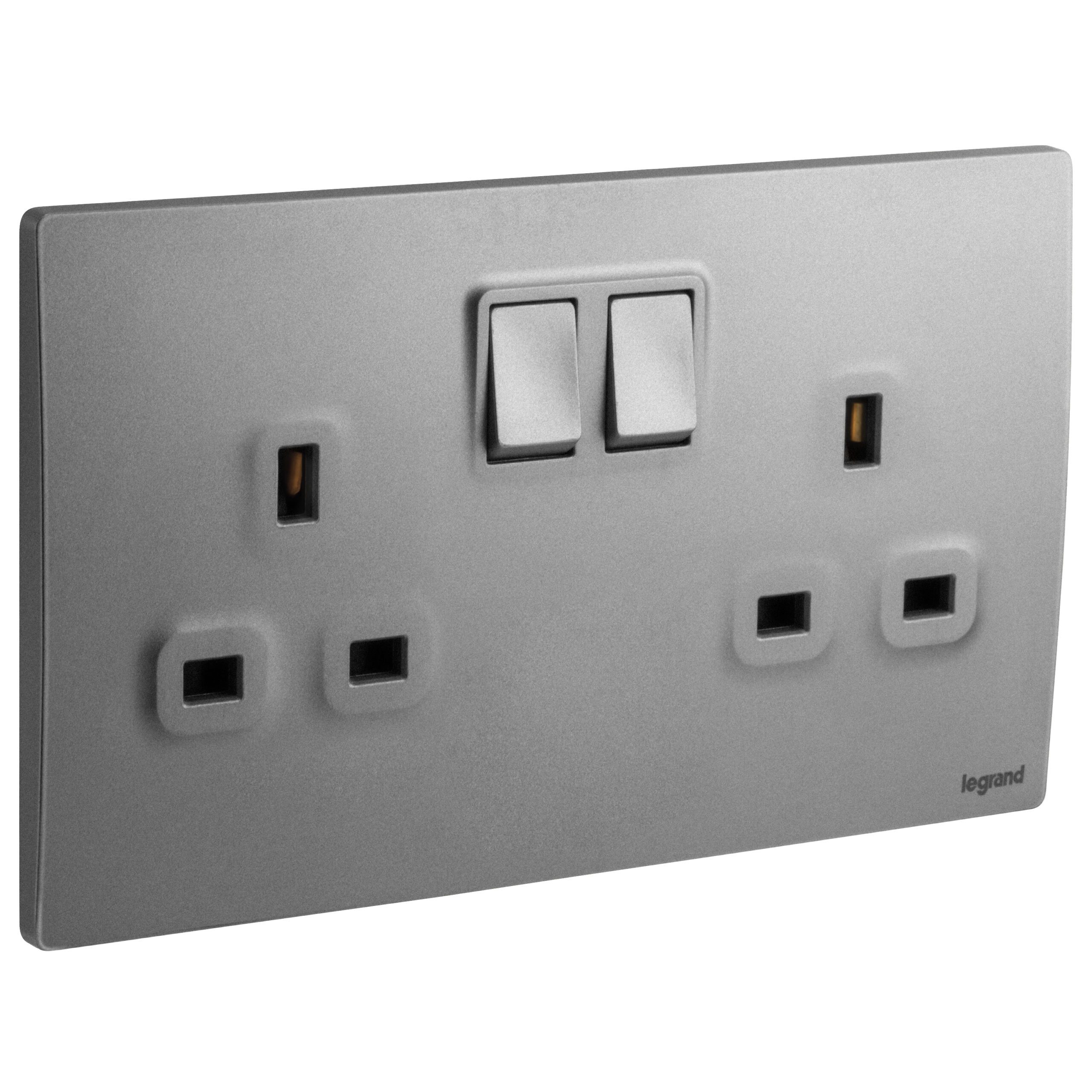 Mallia Senses 2 gang BS switched socket outlet single pole – 13A – with 2 earth connection.