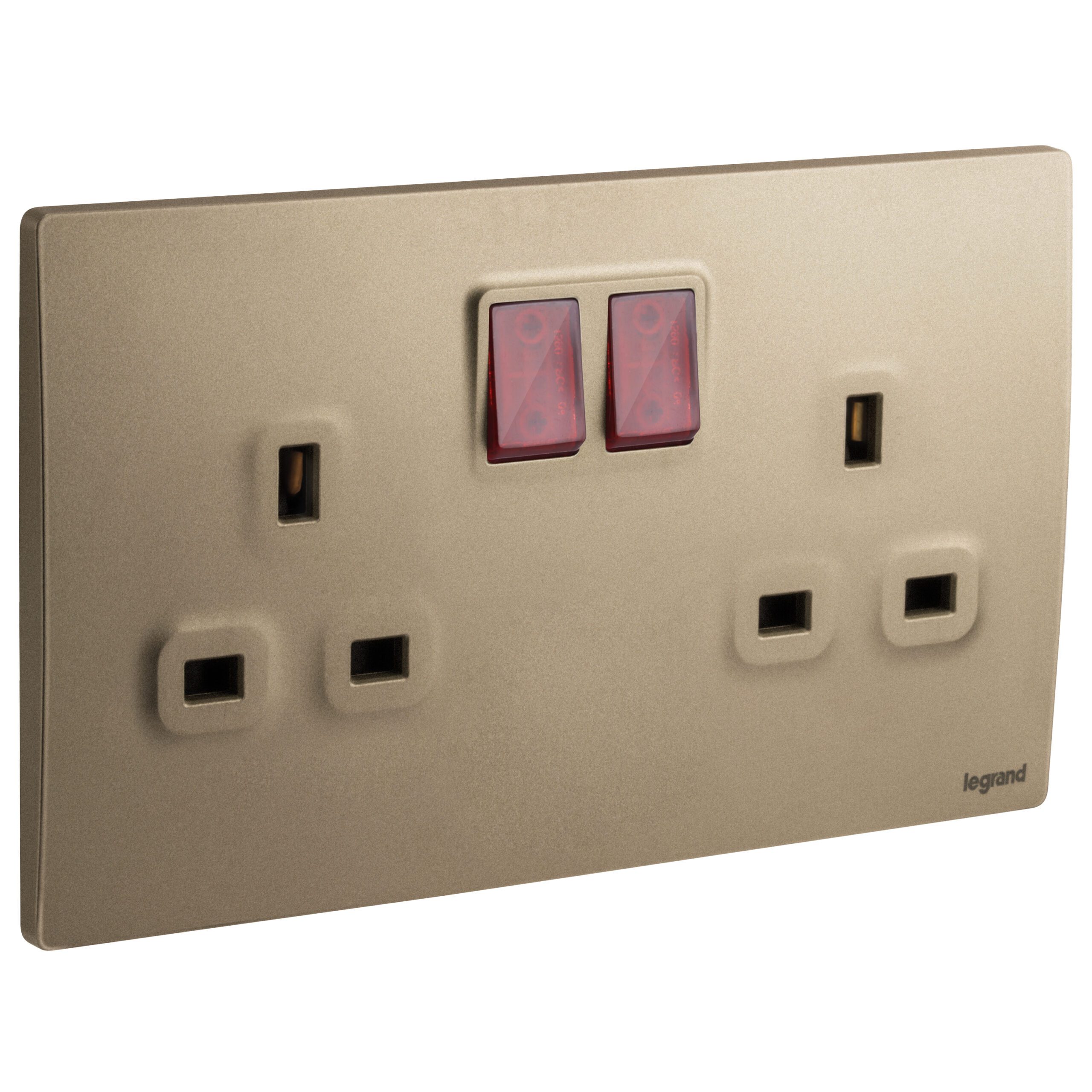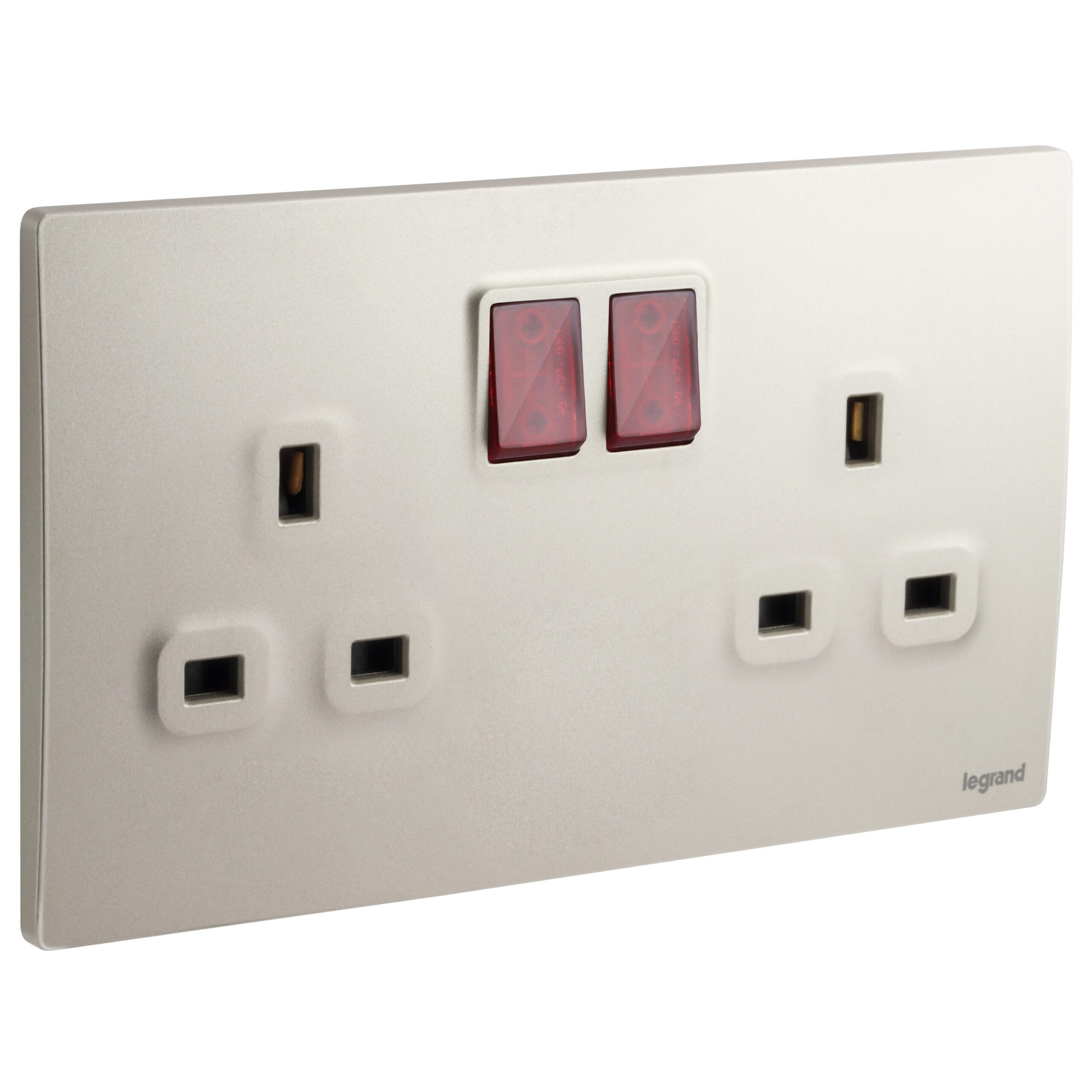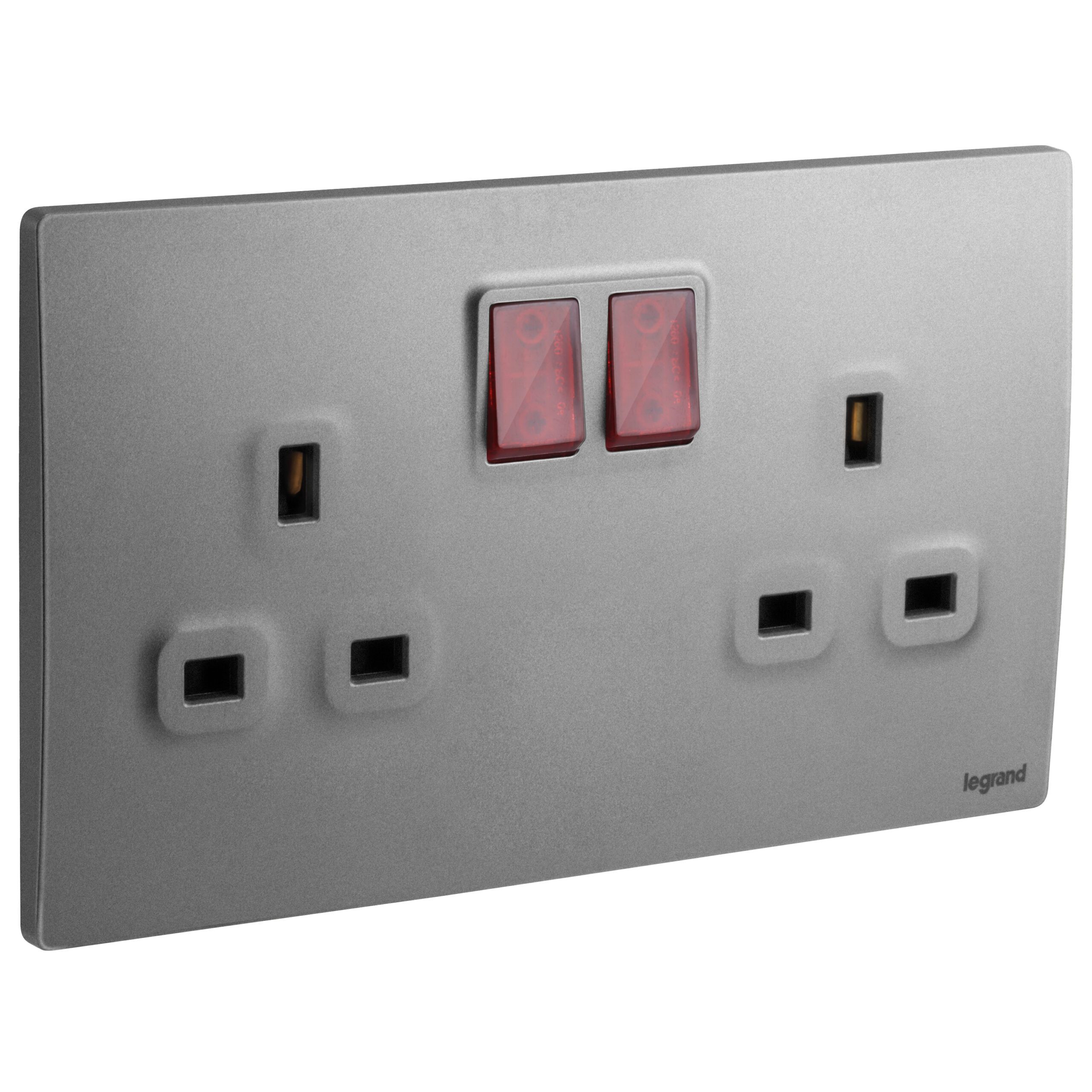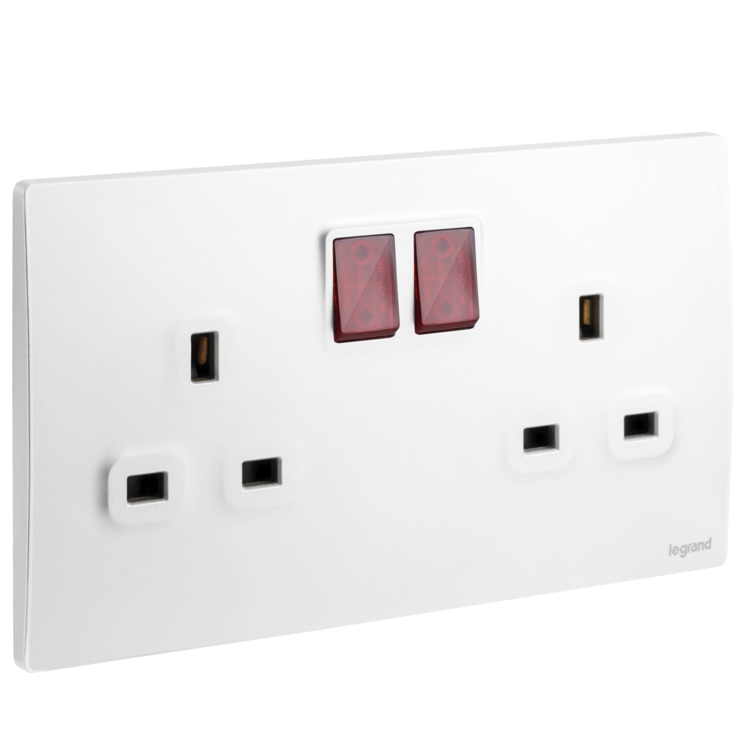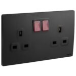 Mallia Senses 2 gang BS switched socket outlet single pole – with LED – 13A.