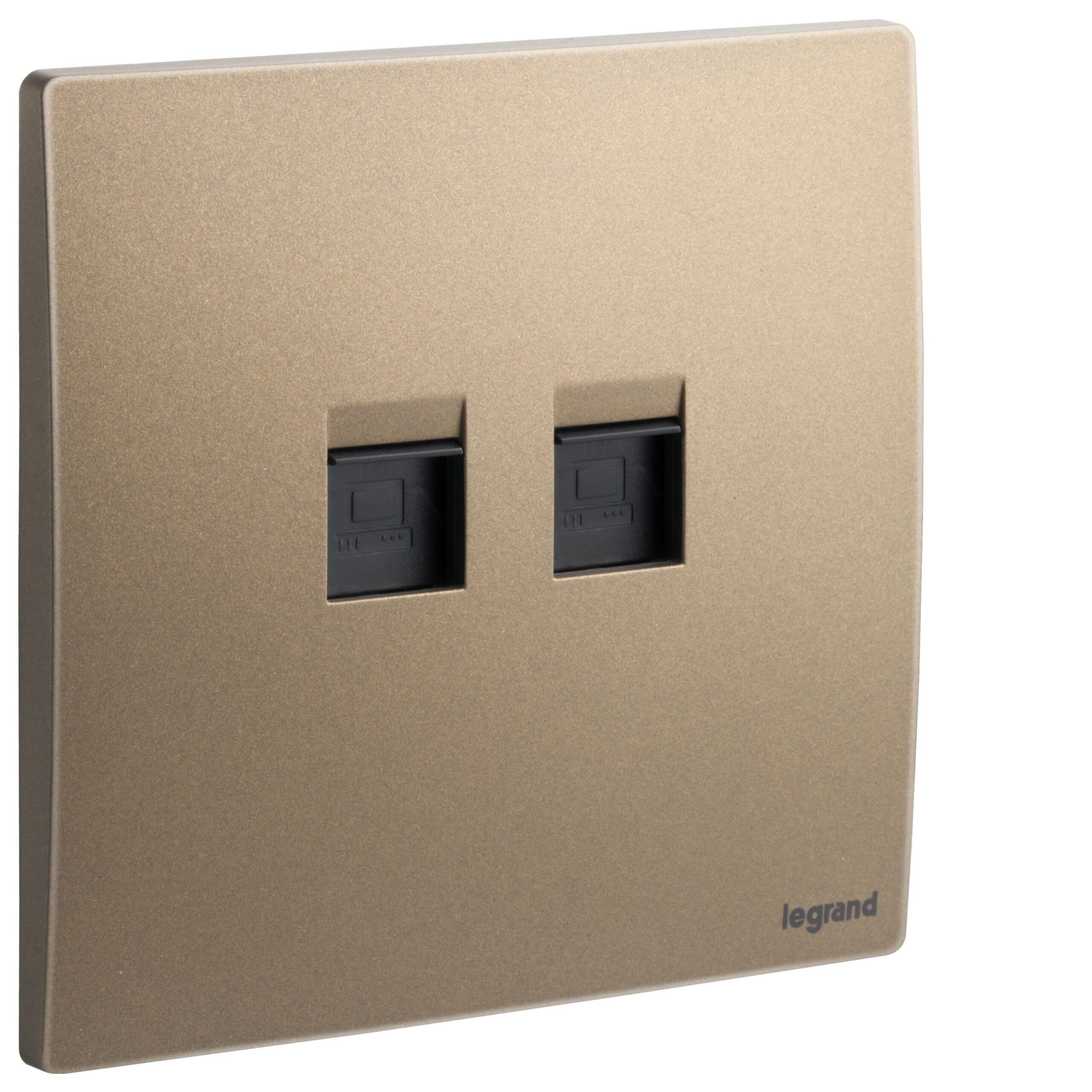 Double RJ45 socket outlet category 6 UTP brushed aluminium.