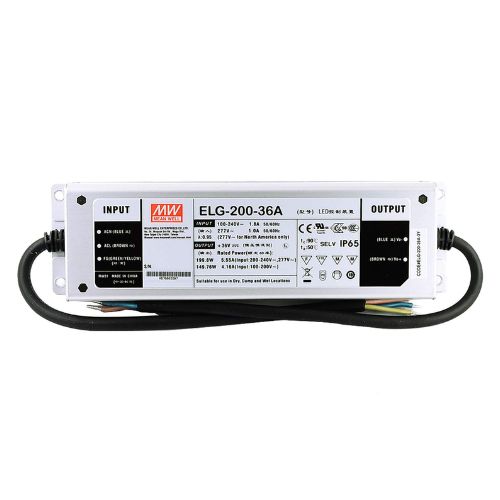 Meanwell ELG-200-36A-3Y AC-DC Single output LED Driver Mix Mode (CV+CC) with PFC; 3 wire input; Output 36VDC at 5.55A; Adjust CC/CV with Potentiometer; IP65; Cable output