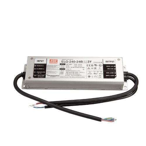 Meanwell ELG-240-24B-3Y AC-DC Single output LED Driver Mix Mode (CV+CC) with PFC; 3 wire input; Output 24VDC at 10A; Dimming 0-10VDC or PWM resistance; IP67; Cable output