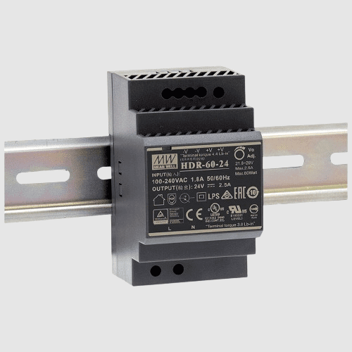 AC-DC Ultra slim DIN rail power supply; Input range 85-264VAC; Output 48VDC at 1.25A; Pass LPS.