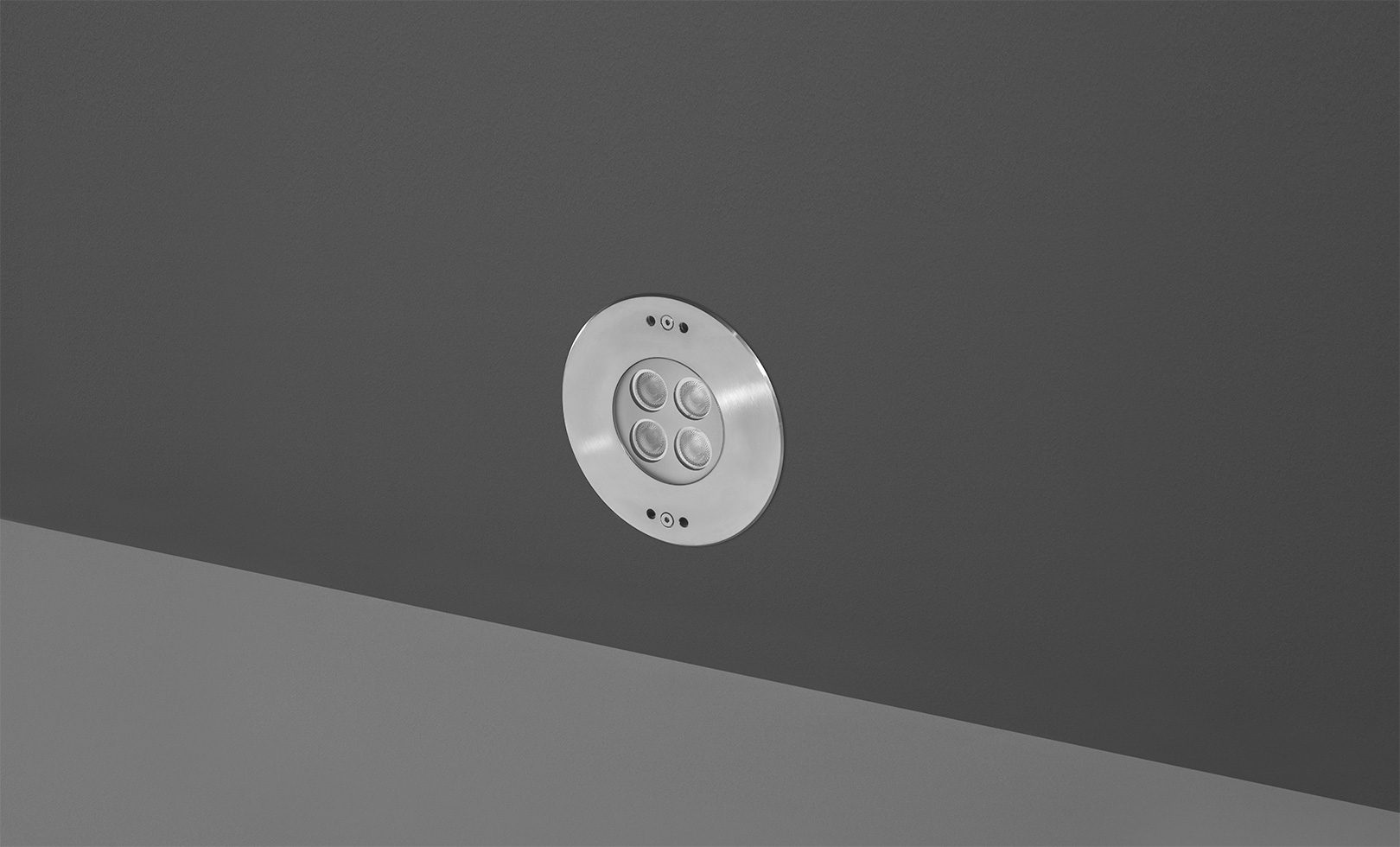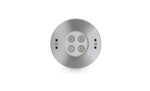 Swimming-pool underwater luminaire, round shape, wall-recessed, completely made in stainless steel AISI 316L, polypropylene housing for recess. 24V remote driver needed, with 4 OSRAM LED. IP 68 rating.