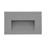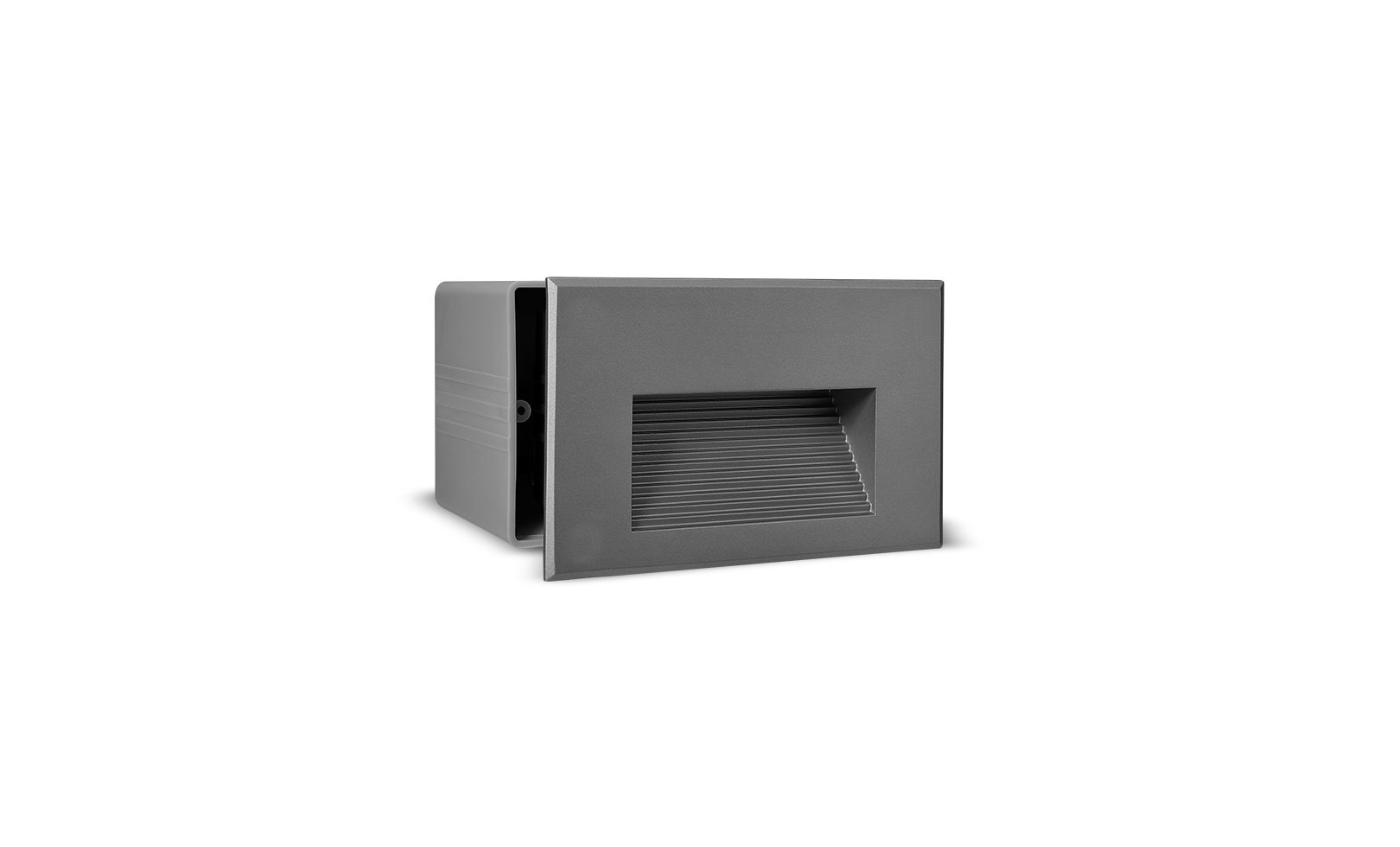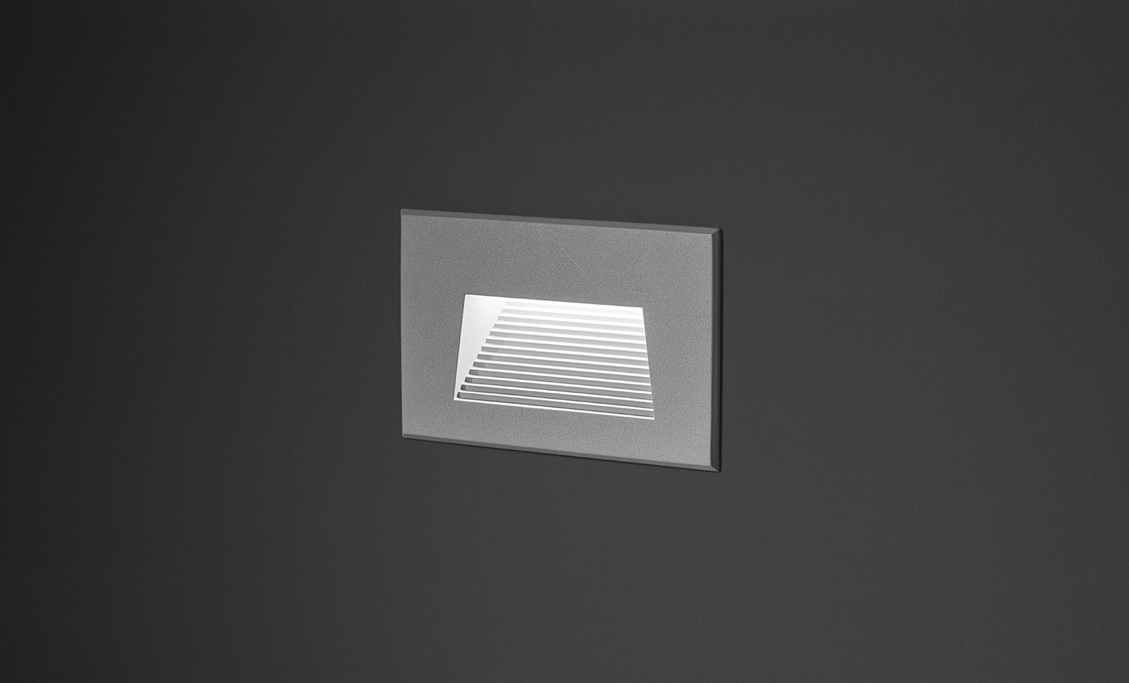 Recessed linear steplight for outdoor installation in the wall, phospho-chromatised and polyester powder coated die-cast copper-free aluminium body and frame, tempered frosted glass diffuser, polypropilene housing for recess, moulded silicone gasket and stainless steel screws. Built-in LED driver 220-240V 50-60Hz, with 24 low-power SMD3528 LED. IP65 rating.