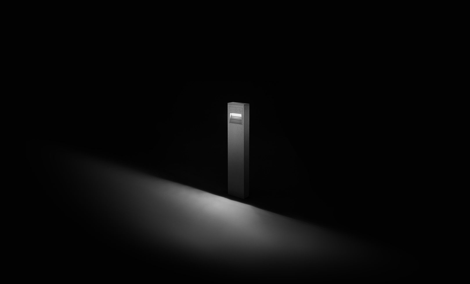 700 mm height bollard, rectangular section, for outdoor surface installation, floor washer 180° light distribution, phospho-chromatised and polyester powde coated extruded copper-free aluminium body, frosted glass diffuser, moulded silicone gasket and stainless steel screws. Built-in LED driver 220-240V 50-60Hz, with 6 mid-power CREE XH-G LED. IP65 rating.